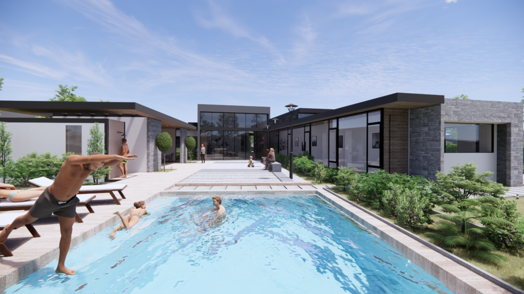 La propuesta contempla 3 cabañas tipo con moderno diseño, donde la calidad espacial y el uso de las visuales potencian un sentido de amplitud y naturaleza. Ideadas con panel SIP (structural insulated panel) para una construcción simple y rápida con terminaciones elegantes de gran calidad.