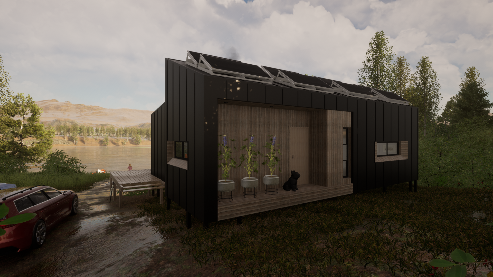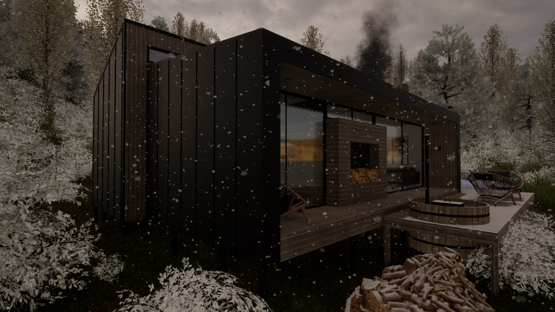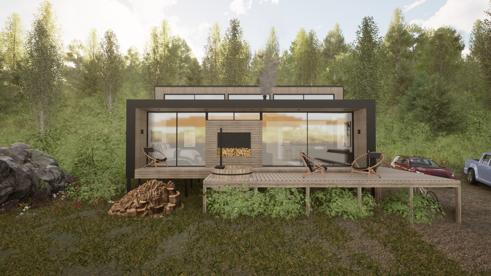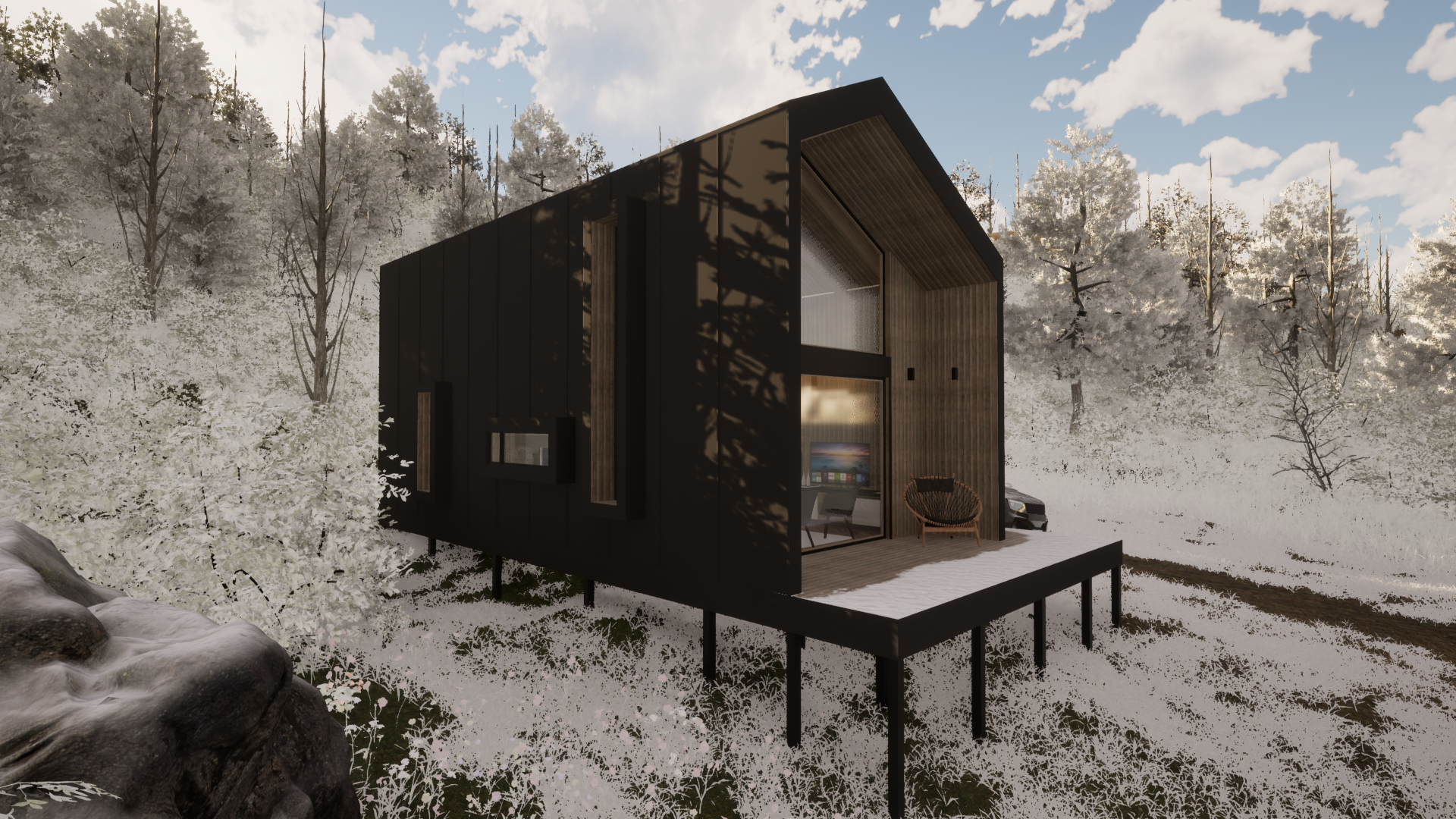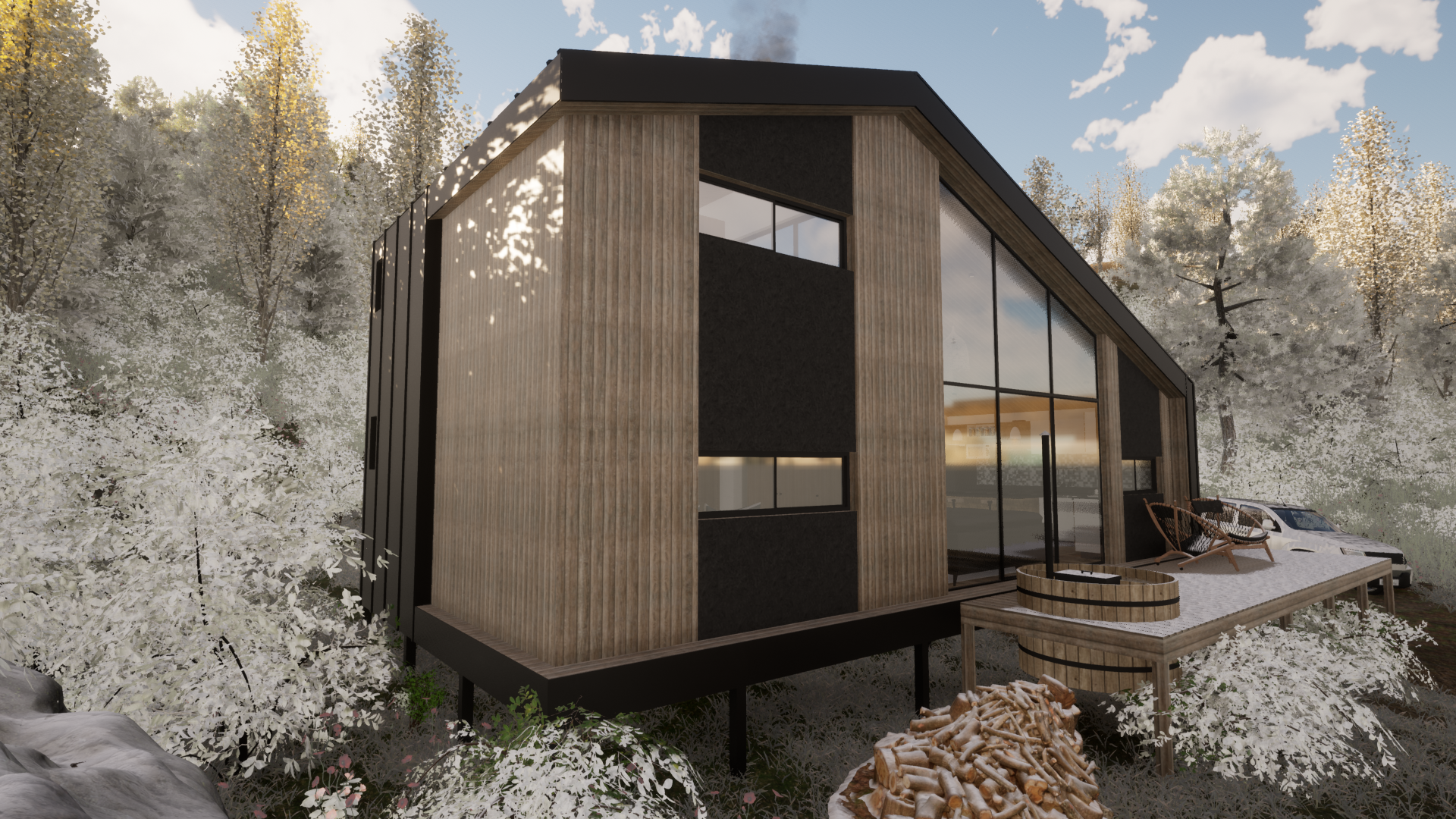 Consiste en tres cabañas tipo, ideadas con panel SIP (STRUCTURAL Insulated Panel) un moderno y completo sistema de construcción con estructura auto-portante, es un panel de poliestireno de alta densidad recubierto en sus dos cara por Laminas de OCB lo que lo hace fácil de trasladar por su peso liviano y beneficios excepcionales para aislar térmicamente las cabañas. El diseño de esta casa es moderno con terminaciones simples pero elegantes permitiendo un ensamblado rápido y de lujo con la capacidad para adaptarse a cualquier geografía