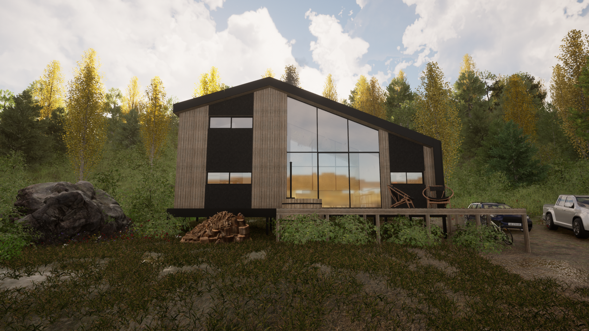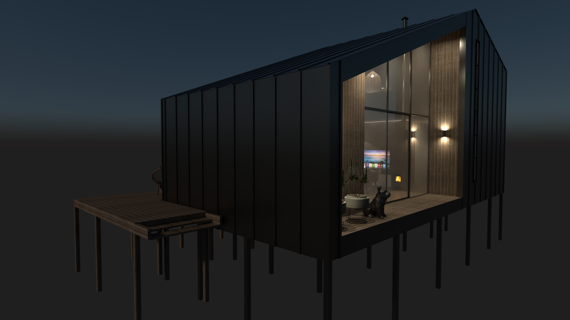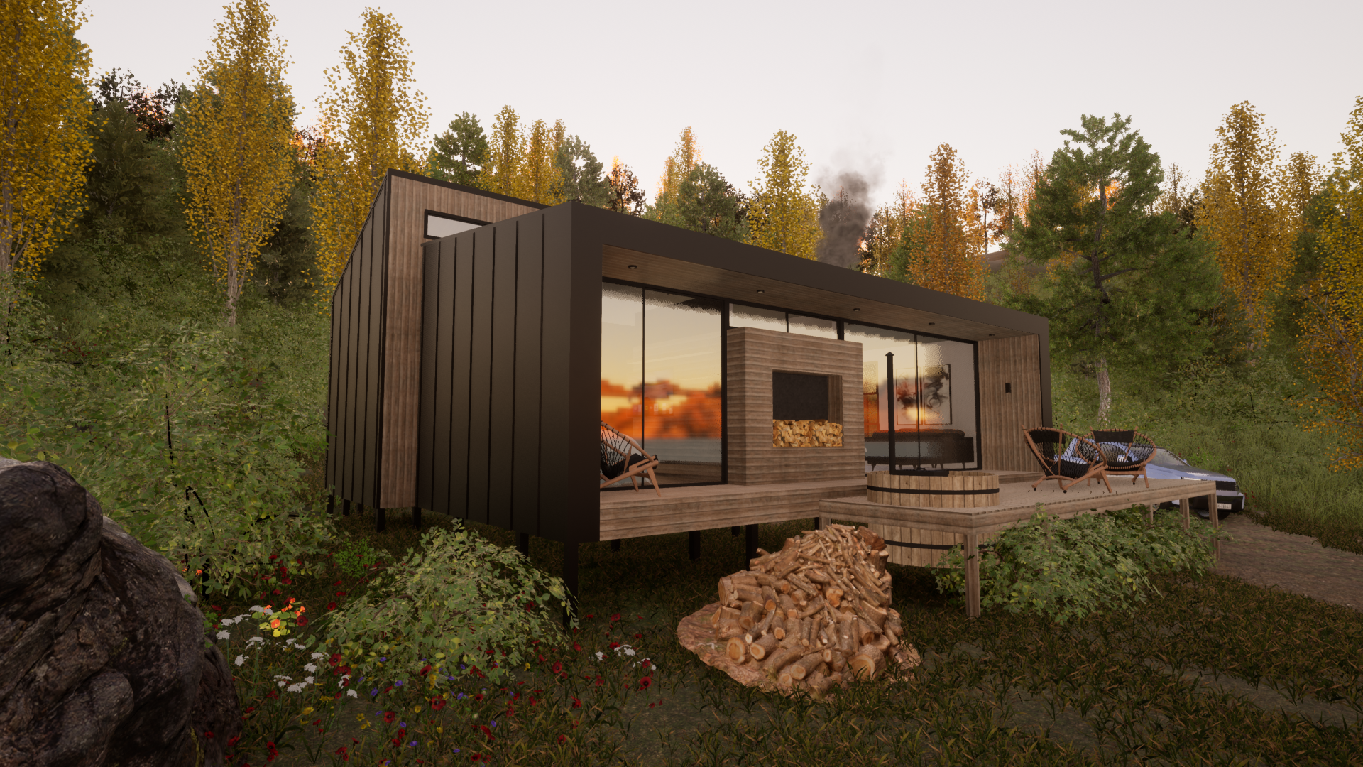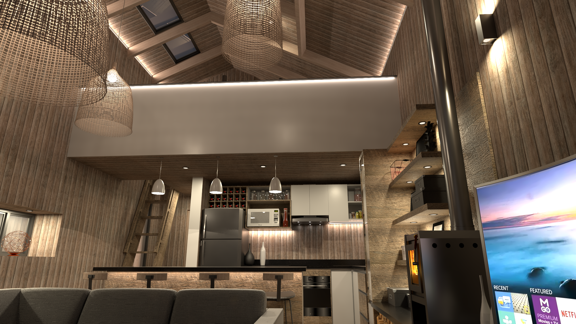 Consiste en tres cabañas tipo, ideadas con panel SIP (STRUCTURAL Insulated Panel) un moderno y completo sistema de construcción con estructura auto-portante, es un panel de poliestireno de alta densidad recubierto en sus dos cara por Laminas de OCB lo que lo hace fácil de trasladar por su peso liviano y beneficios excepcionales para aislar térmicamente las cabañas. El diseño de esta casa es moderno con terminaciones simples pero elegantes permitiendo un ensamblado rápido y de lujo con la capacidad para adaptarse a cualquier geografía