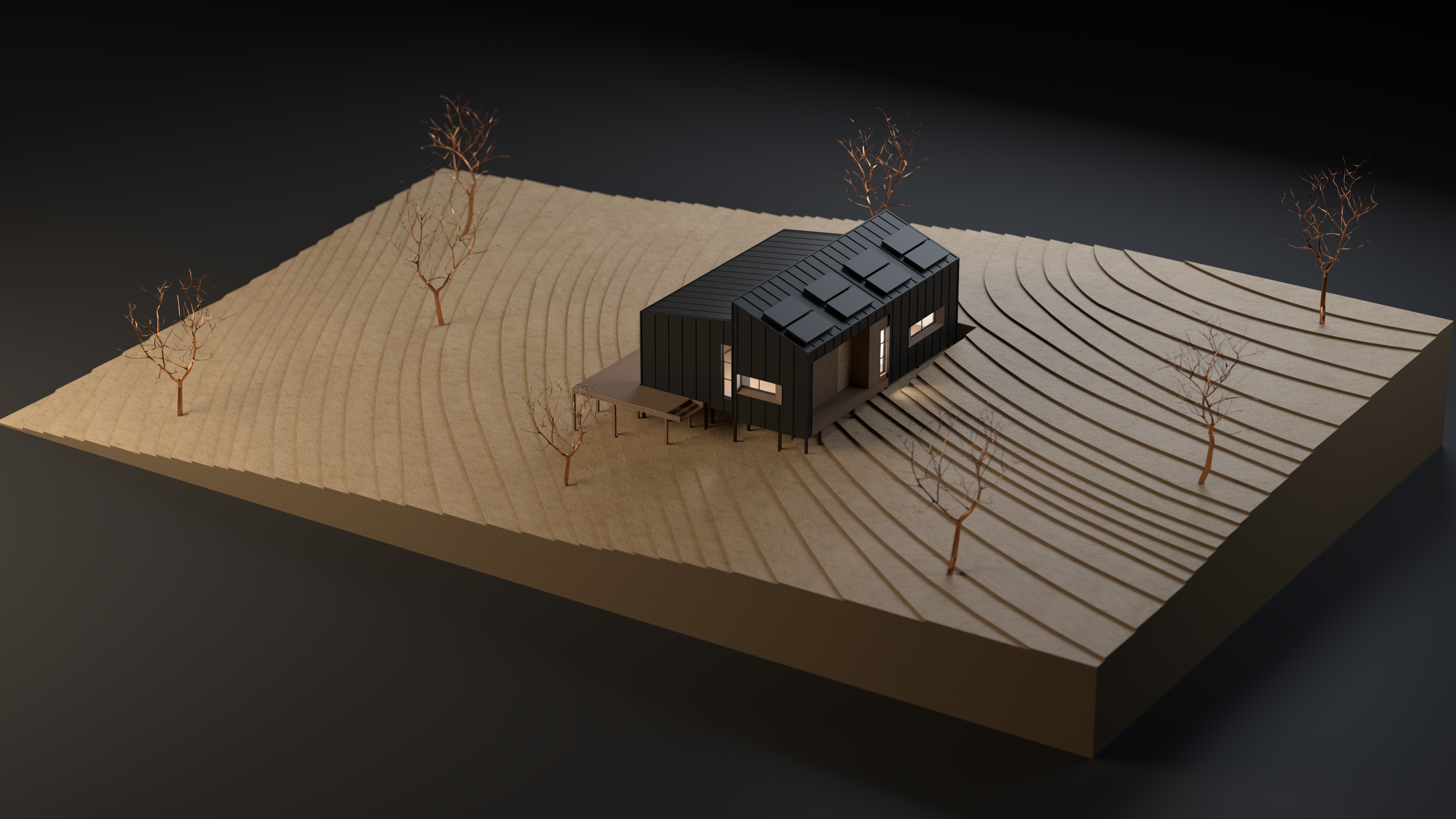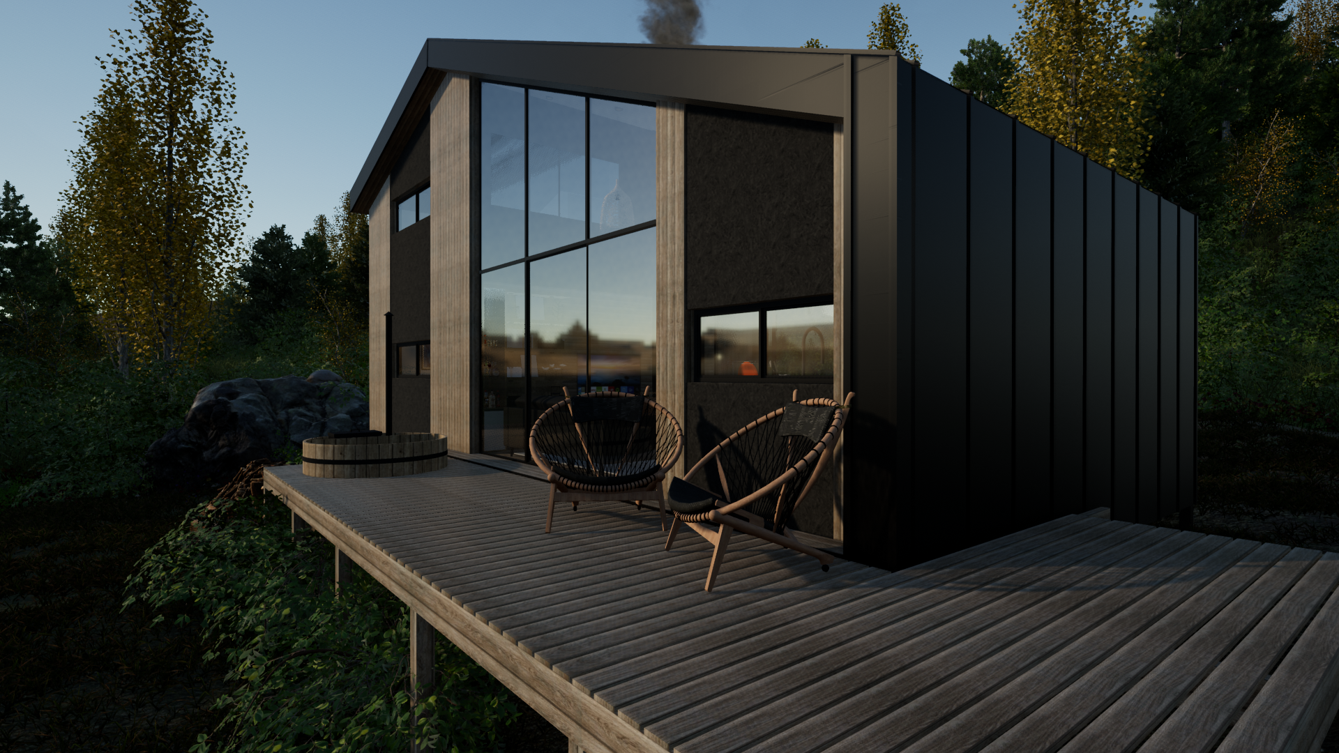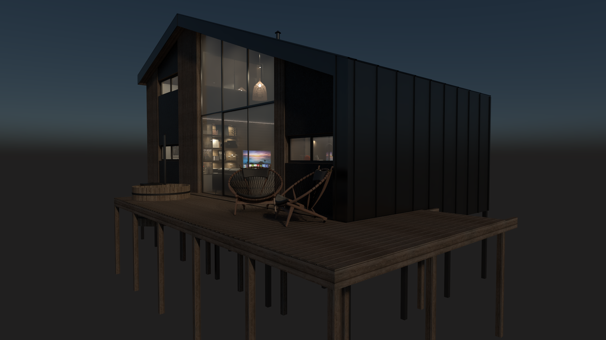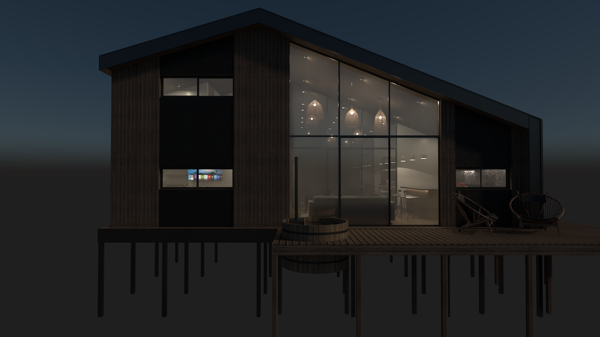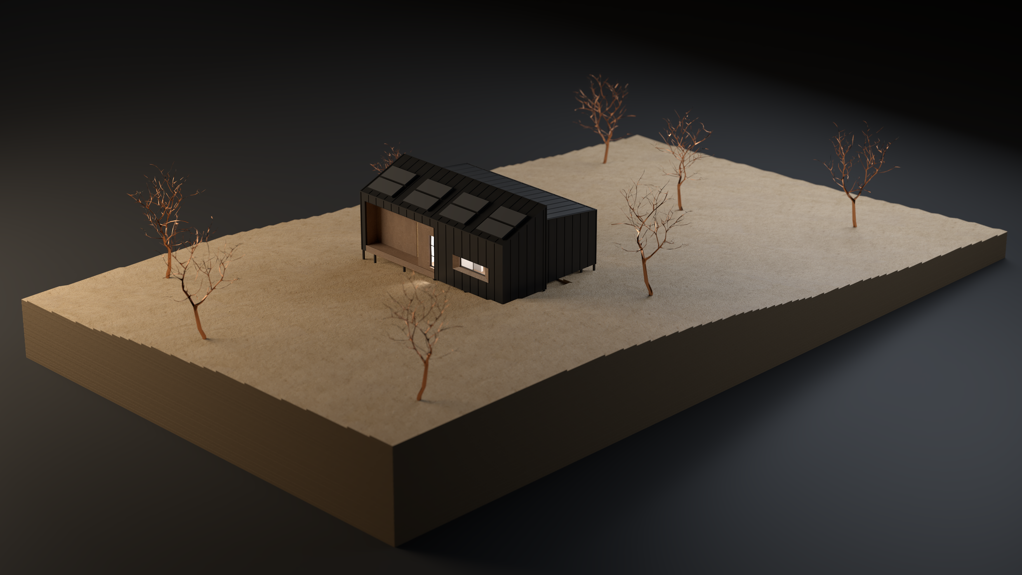 Consiste en tres cabañas tipo, ideadas con panel SIP (STRUCTURAL Insulated Panel) un moderno y completo sistema de construcción con estructura auto-portante, es un panel de poliestireno de alta densidad recubierto en sus dos cara por Laminas de OCB lo que lo hace fácil de trasladar por su peso liviano y beneficios excepcionales para aislar térmicamente las cabañas. El diseño de esta casa es moderno con terminaciones simples pero elegantes permitiendo un ensamblado rápido y de lujo con la capacidad para adaptarse a cualquier geografía