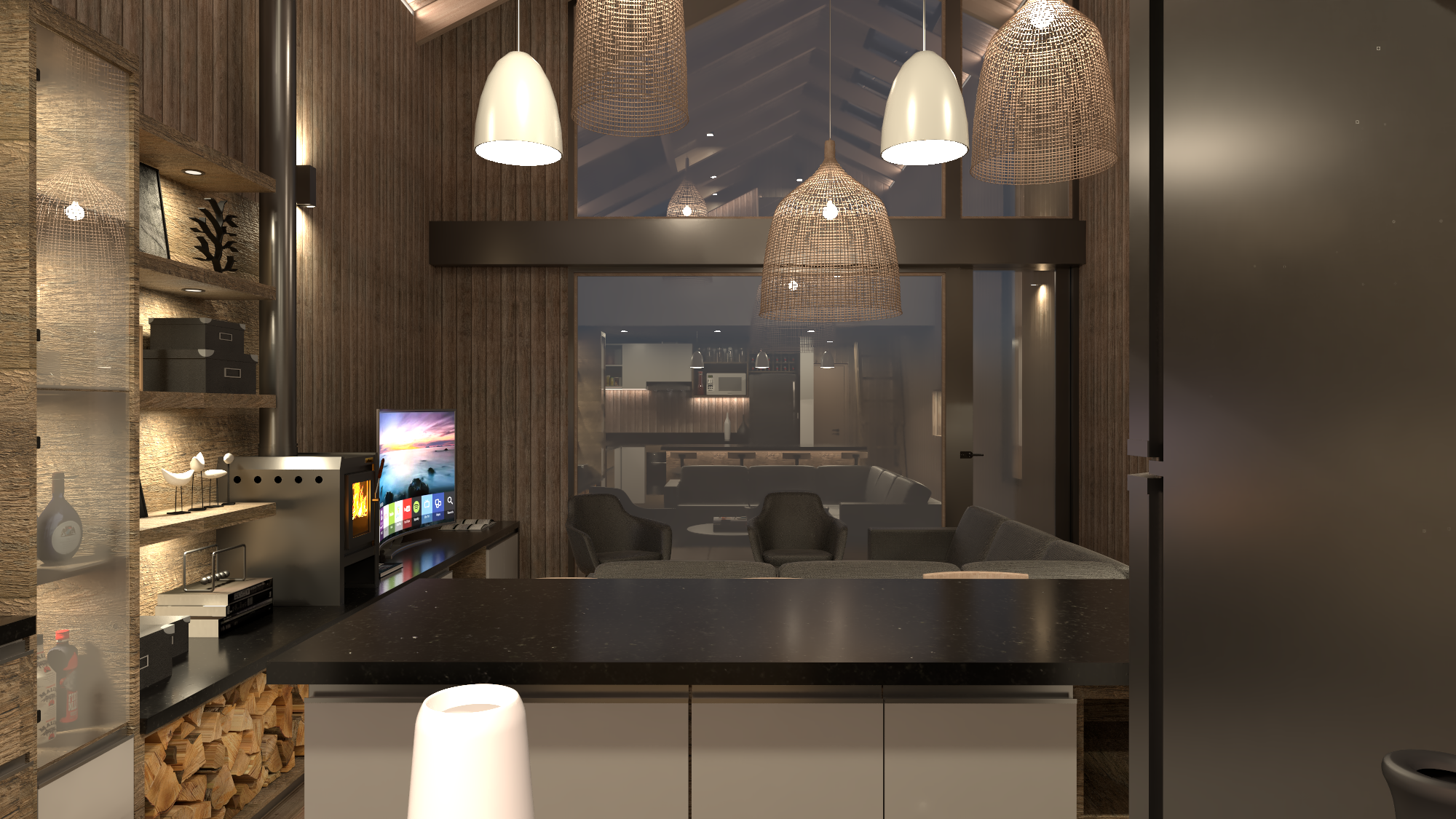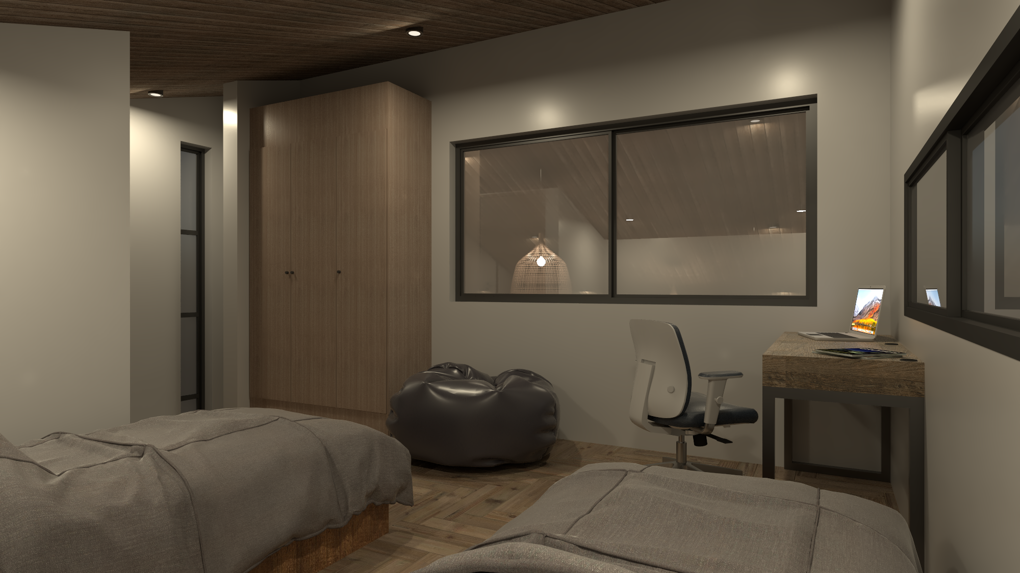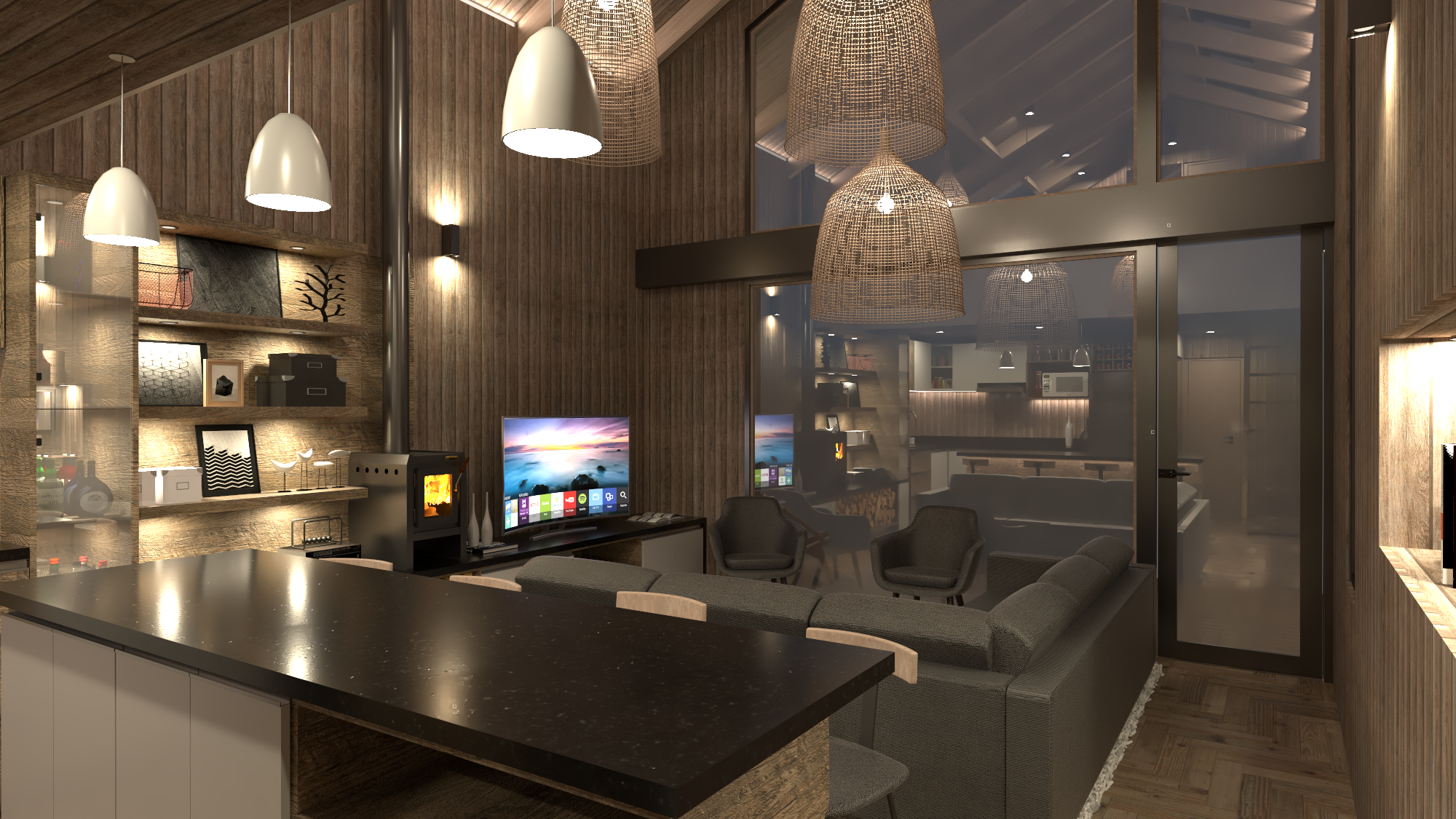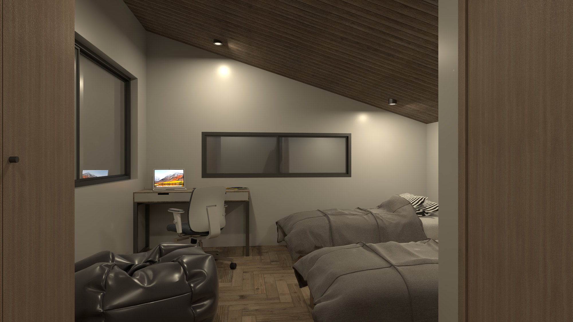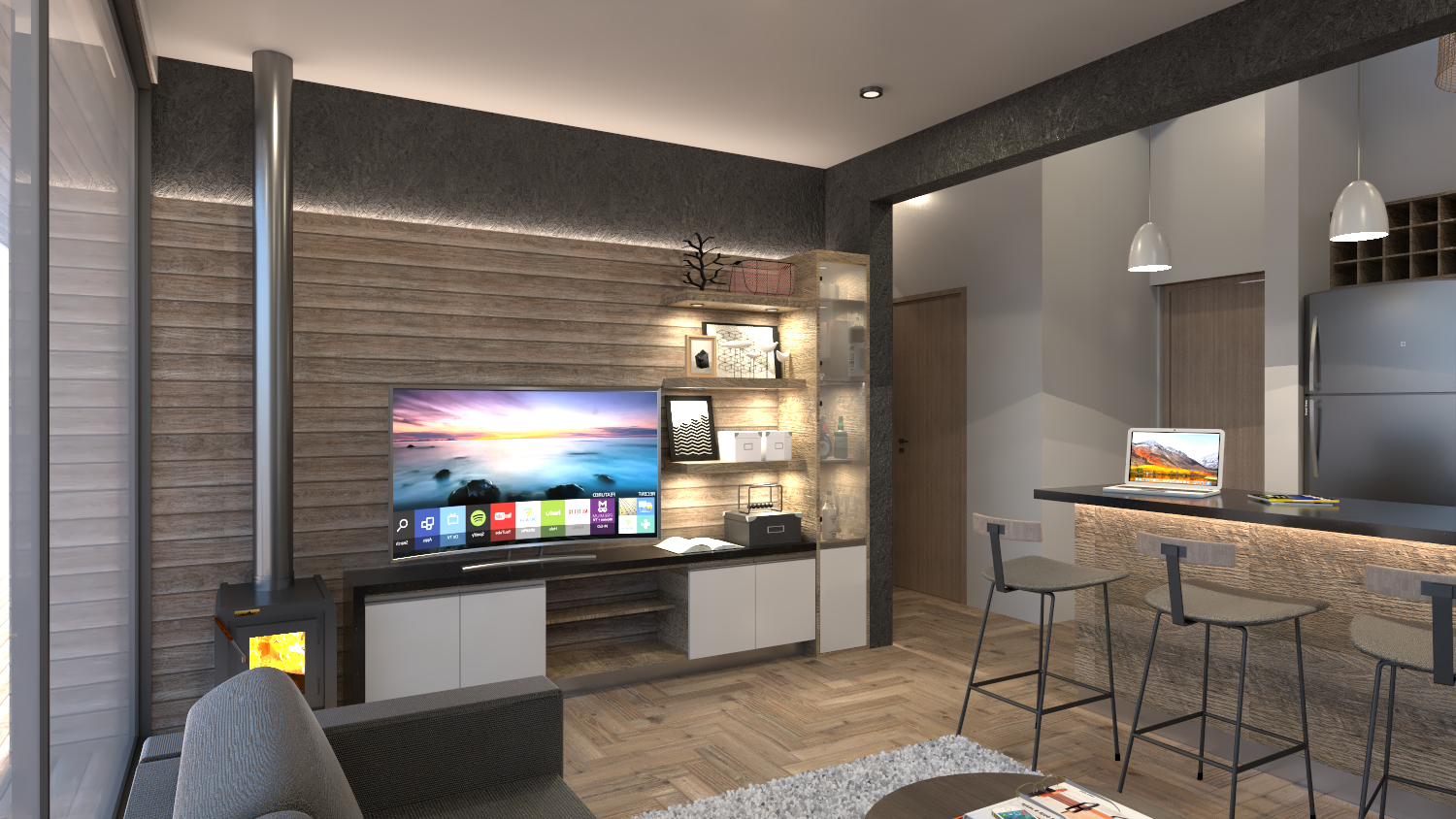 Cabaña Frio nombre inspirado en el Lago Frio de la Patagonia Chilena. Esta espectacular cabaña se caracteriza por espacios cálidos que te harán sentir en casa el programa arquitectónico incluye 1 habitación principal, 1 habitación secundaria dividida en dos niveles, 2 baños, 1 living y 1 cocina