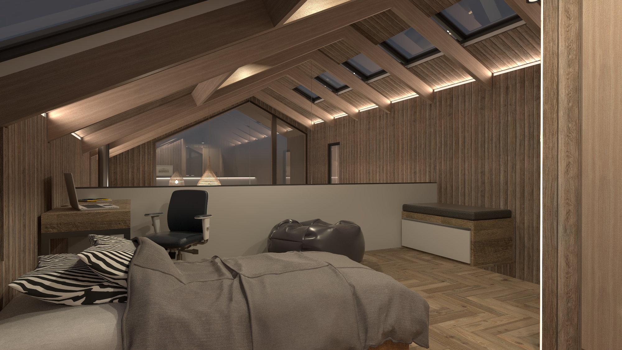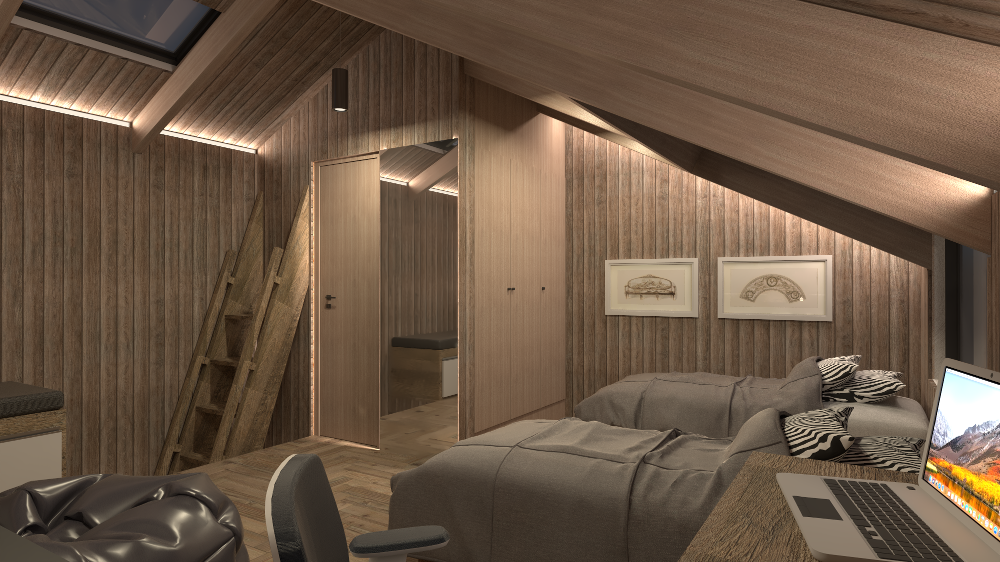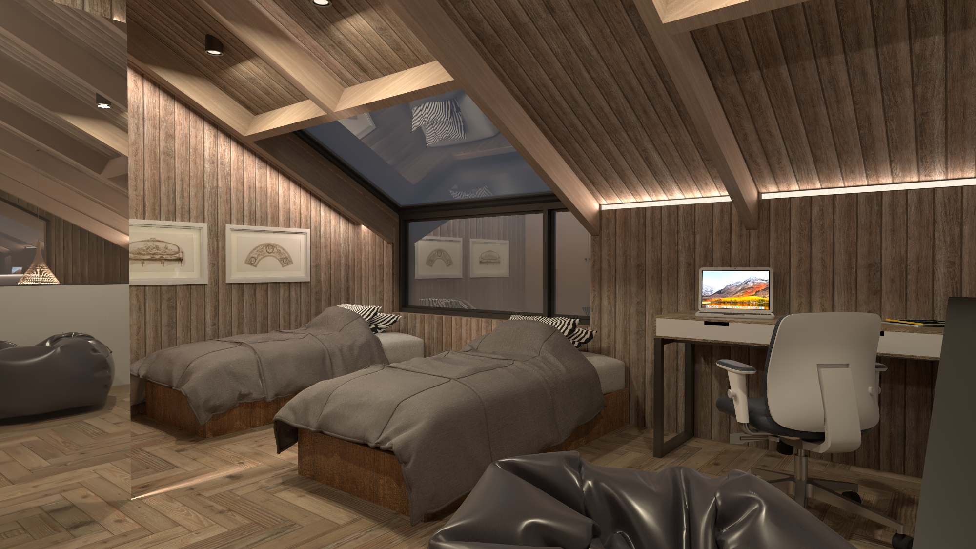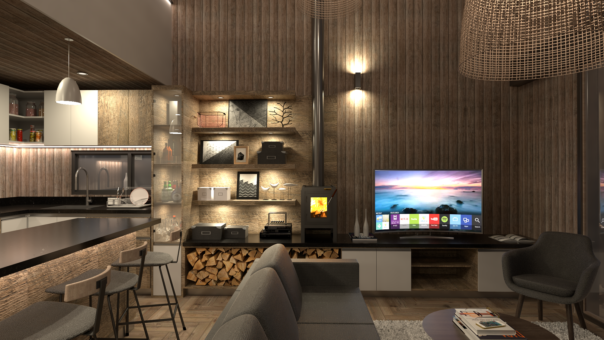 Cabaña Frio nombre inspirado en el Lago Frio de la Patagonia Chilena. Esta espectacular cabaña se caracteriza por espacios cálidos que te harán sentir en casa el programa arquitectónico incluye 1 habitación principal, 1 habitación secundaria dividida en dos niveles, 2 baños, 1 living y 1 cocina