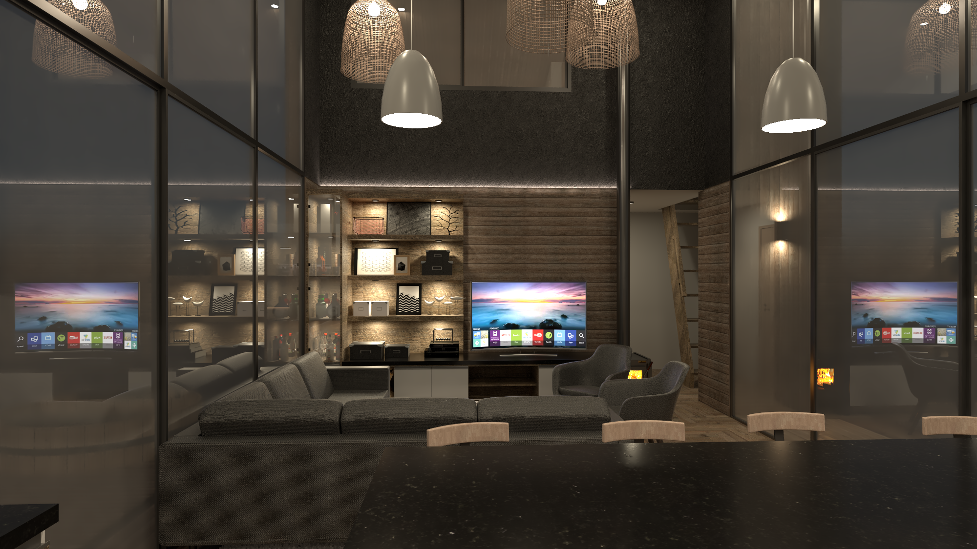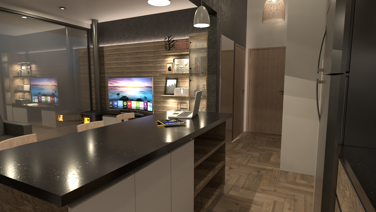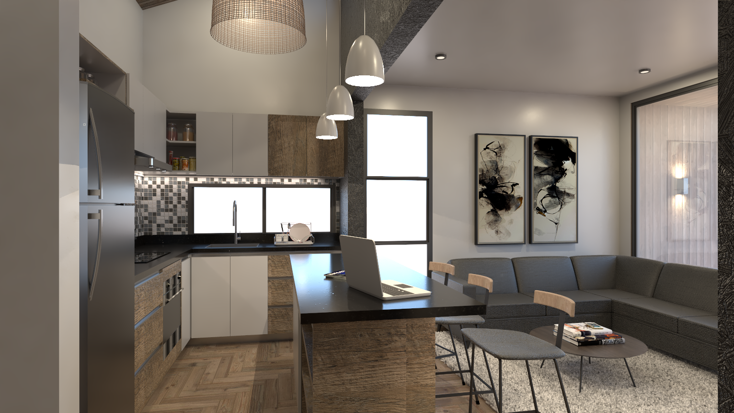 En el acceso no encontramos con un gran espacio a doble altura donde se relaciona el living la cocina y a través de grandes paño de vidrio potenciando las visuales de los paisajes. 2 habitaciones, 2 baños living y cocina distribuida en dos plantas