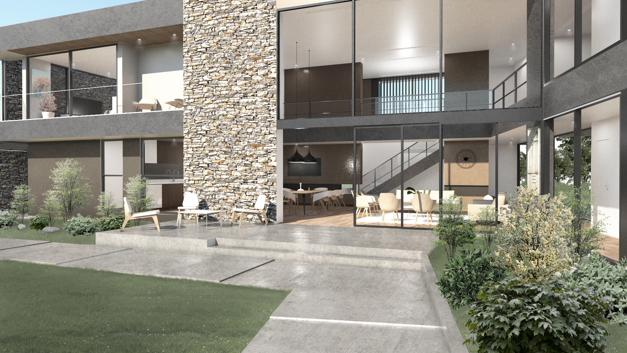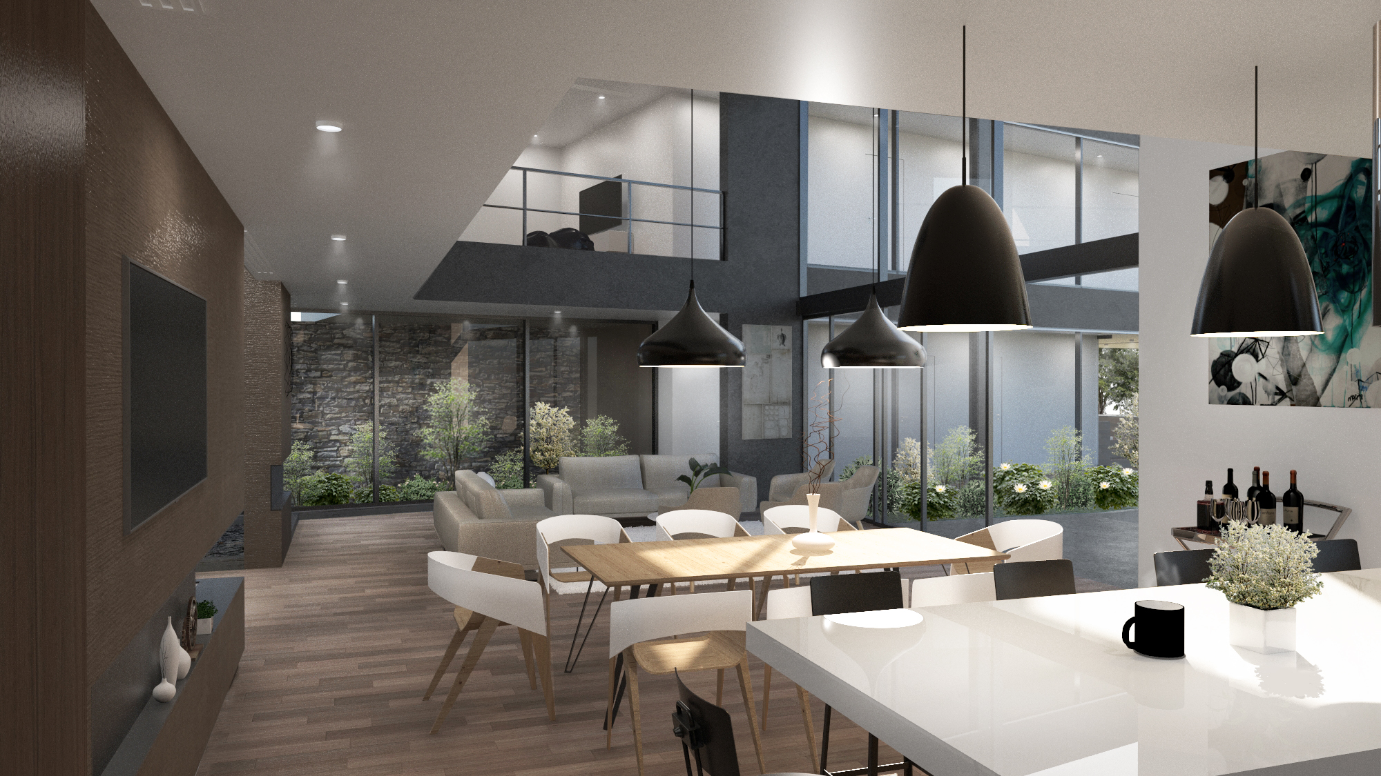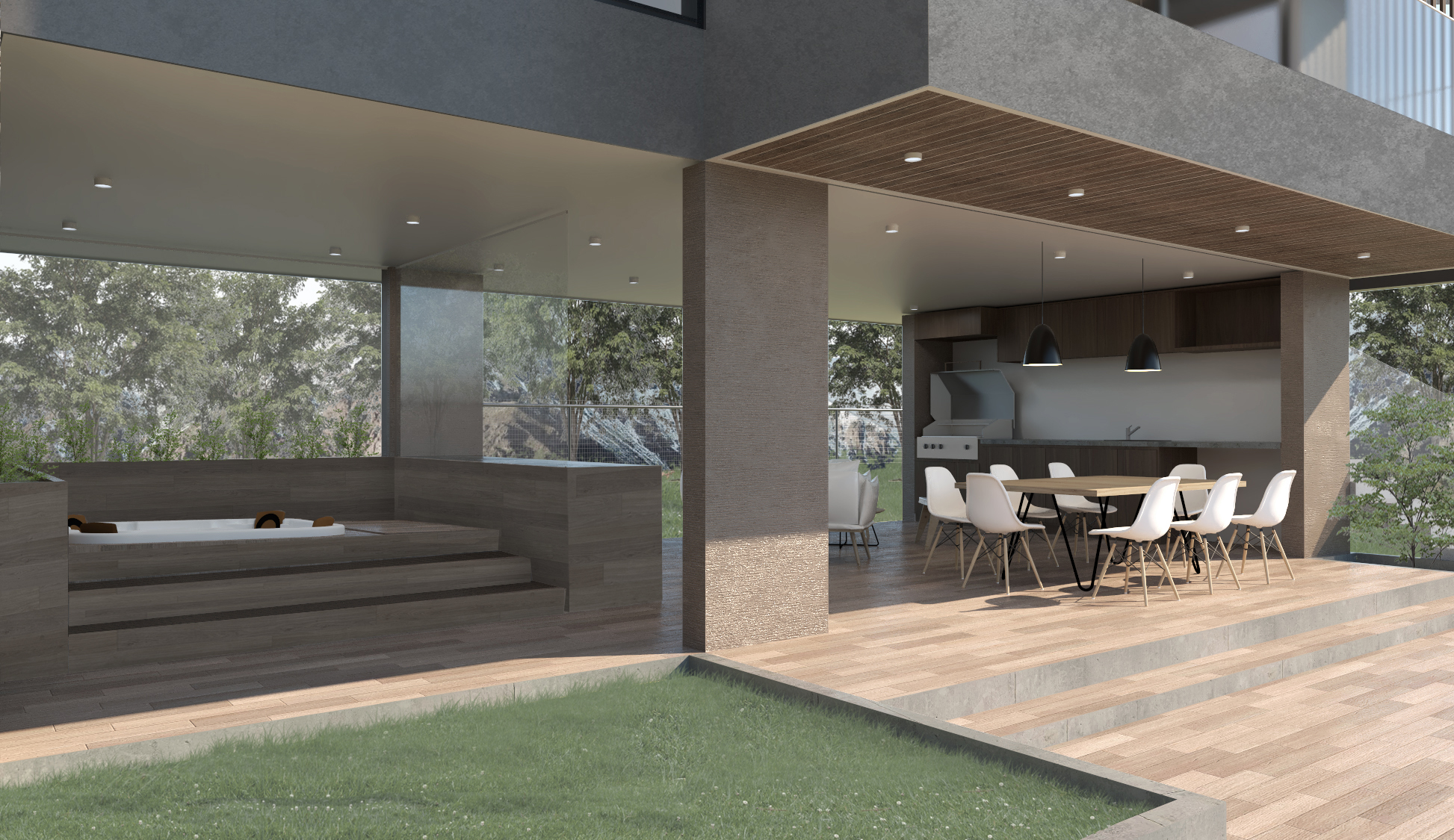Se caracteriza por un estilo moderno de líneas limpias, tendencia minimalistas, materiales nobles y grandes áreas sociales. Se destaca en los distintos recintos, la relación del espacio interno-externo manteniendo visuales hacia las áreas externas a lo largo de su recorrido.