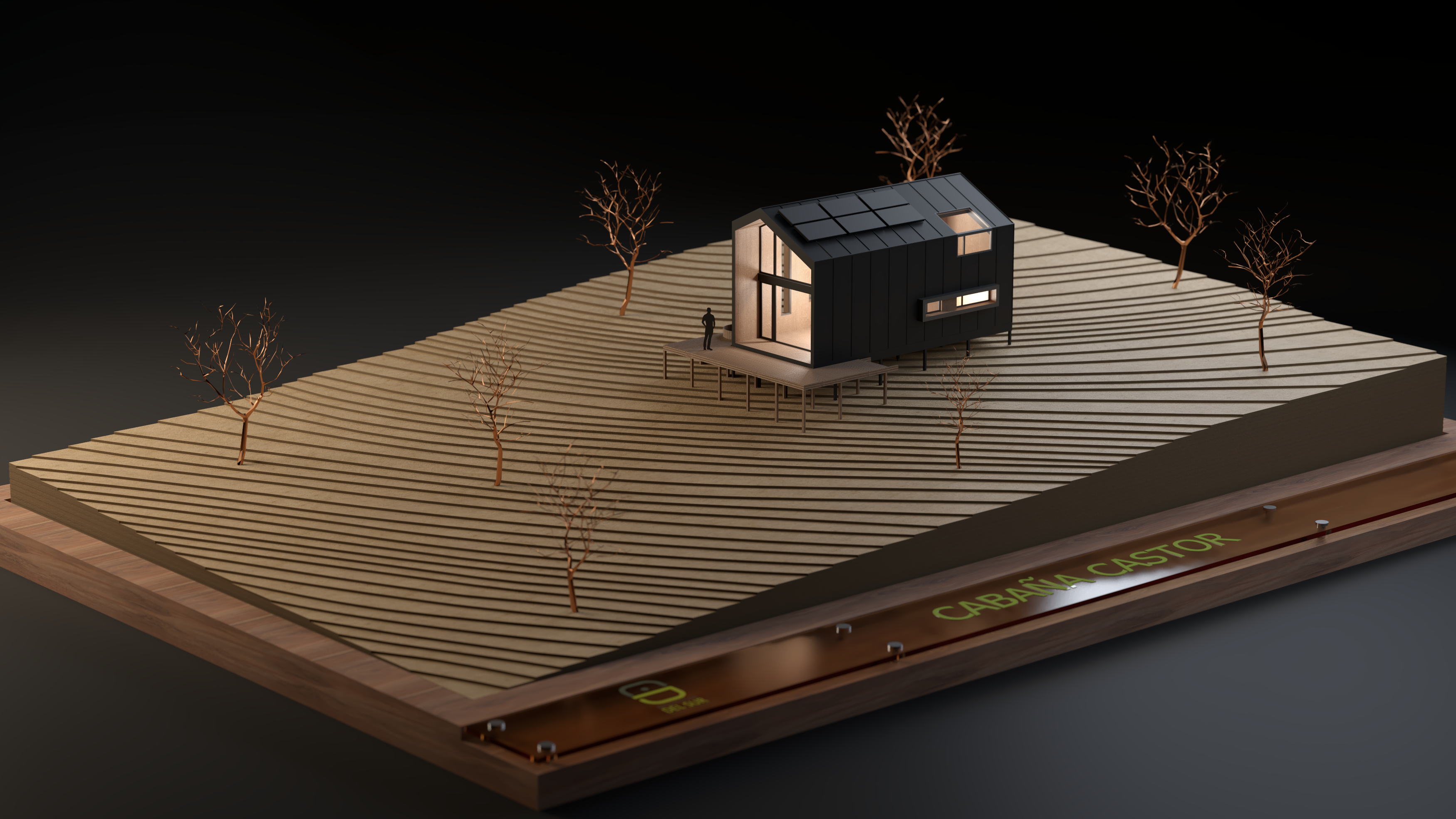 Consiste en tres cabañas tipo, ideadas con panel SIP (STRUCTURAL Insulated Panel) un moderno y completo sistema de construcción con estructura auto-portante, es un panel de poliestireno de alta densidad recubierto en sus dos cara por Laminas de OCB lo que lo hace fácil de trasladar por su peso liviano y beneficios excepcionales para aislar térmicamente las cabañas. El diseño de esta casa es moderno con terminaciones simples pero elegantes permitiendo un ensamblado rápido y de lujo con la capacidad para adaptarse a cualquier geografía